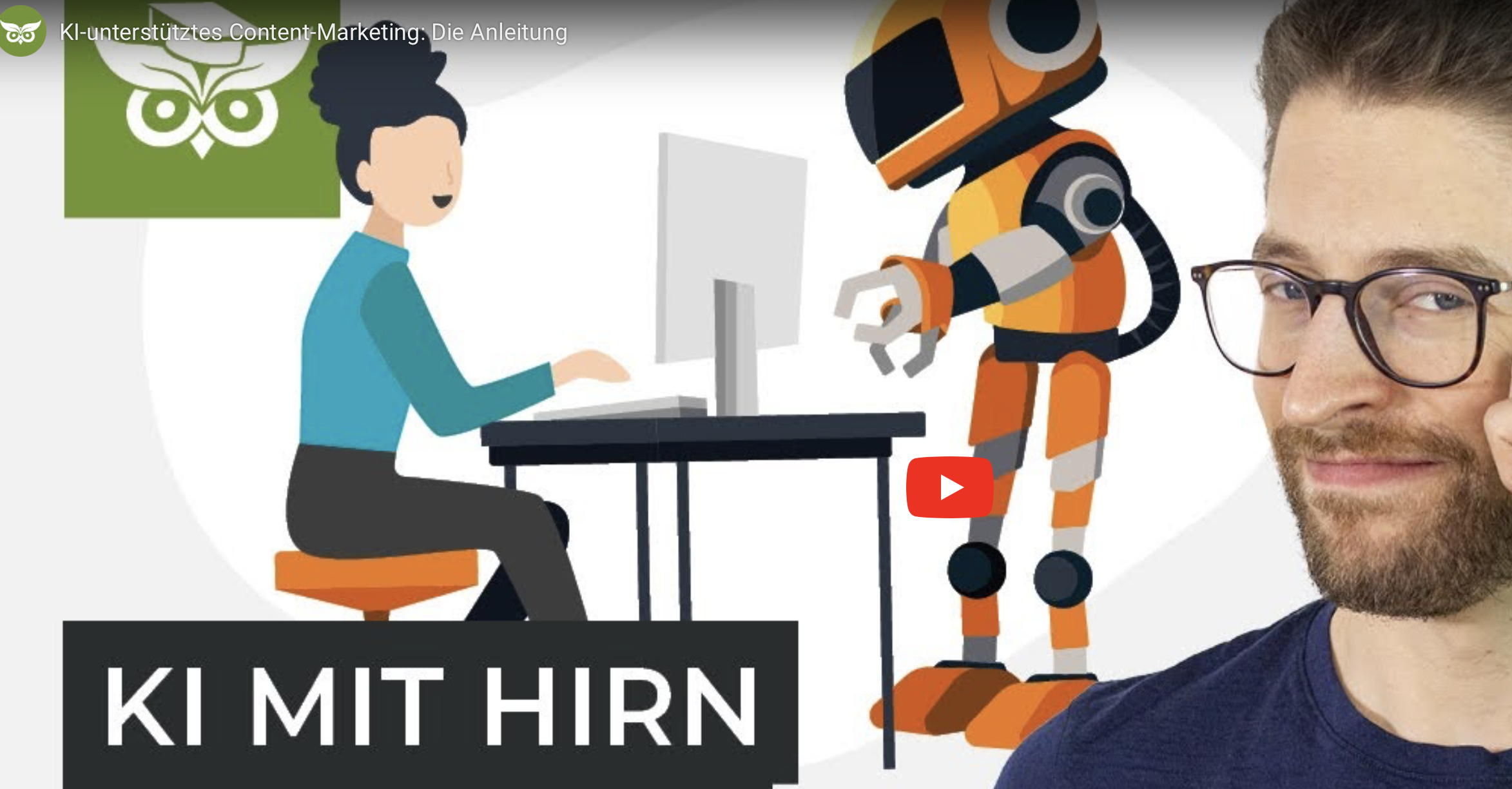 In dieser Anleitung von Alexander Rus, dem Gründer der Medienagentur Evergreen Media, für die Content Erstellung wird deutlich, wie wichtig es ist, ein klares Konzept für die Nutzung von KI zu haben. Ab Minute 23:50 bezieht sich Alexander auf die Praxis seines Unternehmens, dem Onlinemarketing und der Suchmaschinenoptimierung (SEO). Diesen Part könnt ihr euch optional anschauen, wenn euch das Thema interessiert.